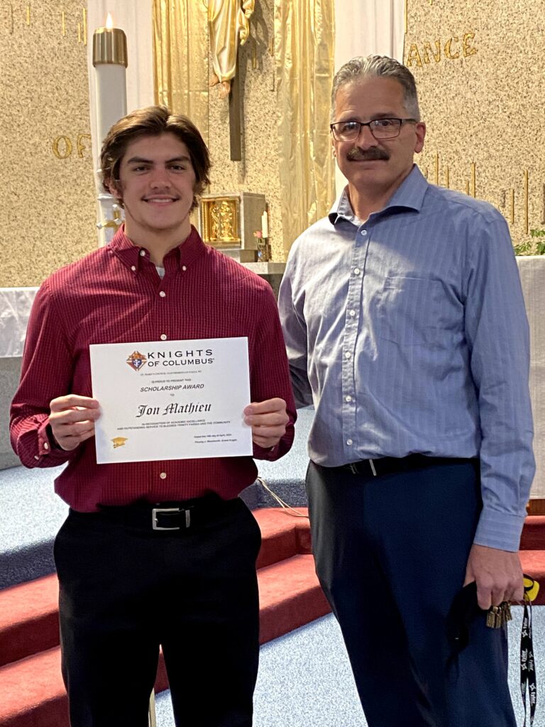 Home About Us Calendar News & Events Council Minutes Contact Congratulations 2021 Scholarship Recipients! Jon Mathieu w/ Grand Knight Tim Woodworth Joseph …